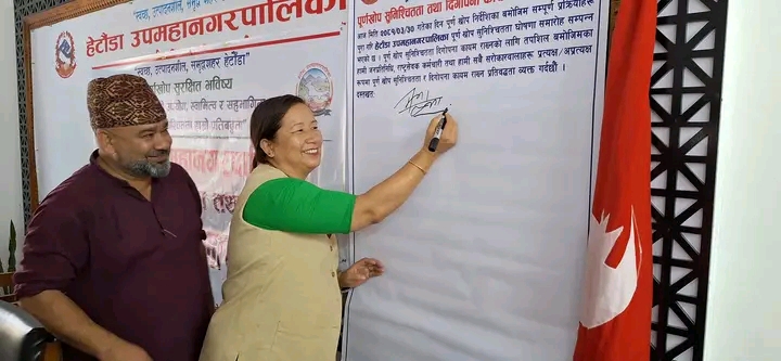 हेटौंडा/ मकवानपुरको हेटौंडा उपमहानगरलाई पूर्णखोप सुनिश्चितता तथा दिगोपना घोषणा गरेको छ । आइतबार पूर्णखोप सुनिश्चित भविष्य”स्थानीय श्रोतको उपयोग, स्वामित्व र सहभागीता, पूर्ण खोप सुनिश्चितता हाम्रो प्रतिबद्धता” भन्दै घोषणा गरेका हुन् ।