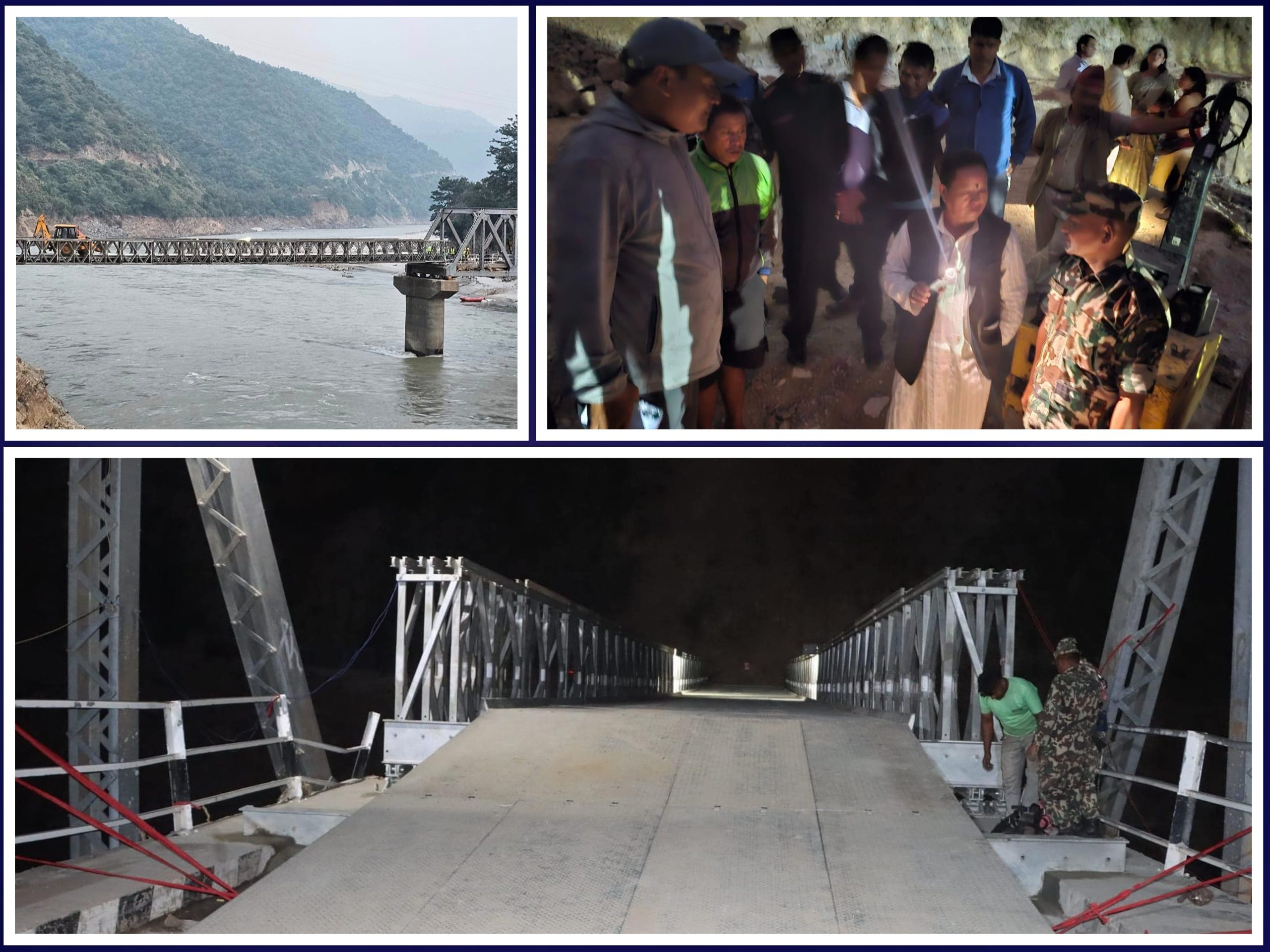 झण्डै ५३ मिटर लामो उक्त पुल नेपाली सेनाका प्रमुख सेनानी नारायण तुम्बाहम्फेको नेतृत्वमा रहेको प्राविधिकको टोलिले जडान गरेको हो । पुल जडान कार्य आईतबार सकिएको भएपनि मंगलबारबाट मात्र यातायात संचालन गर्ने तयारी भएको छ ।