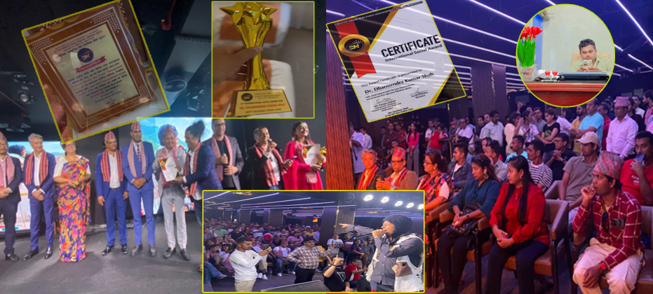 विगत ६ वर्षदेखी नीयमित रुपमा हरेक वर्ष विभिन्न देशहरूमा गर्दै आएको साहित्यिक, सांस्कृतिक, साङ्गितिक साँझ तथा छैठौ अन्तरास्ट्रिय सोसियल अवार्ड यसपटक भने युएईको दुबईस्थित क्लब एसके सेभेनमा सम्पन्न गरिएको थियाे । नेपालको प्राकृतिक विपत्ति बाढि पहिरोबाट पीडित बनेका नागरिकहरुको सहयोगार्थ दुबईमा सम्पन्न उक्त कार्यक्रममा लामाे समयदेखि सामाजिक क्षेत्रमा सक्रिय झापा जिल्ला शिवसताक्षी -४ बाेलाेचाैक निवासी डा. धर्मेन्द्र कुमार शाहले अवार्ड हात पारेका छन् ।