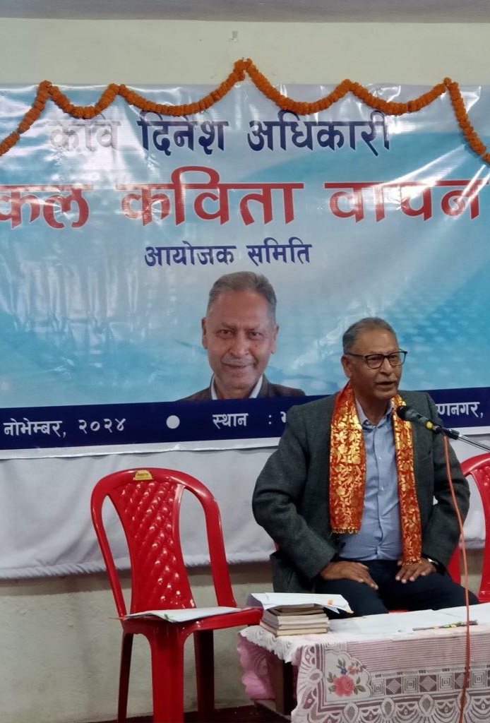 साहित्य सुनौँ परिवारको आयोजना र दार्जिलिङ जर्नल पब्लिकेशनको सहयोगमा गत बुधबार सम्पन्न कार्यक्रममा कवि अधिकारीले विसं २०३६ देखि २०८१को अवधिमा लेखिएका करिब दुई दर्जन कविता वाचन गर्नुभयो ।