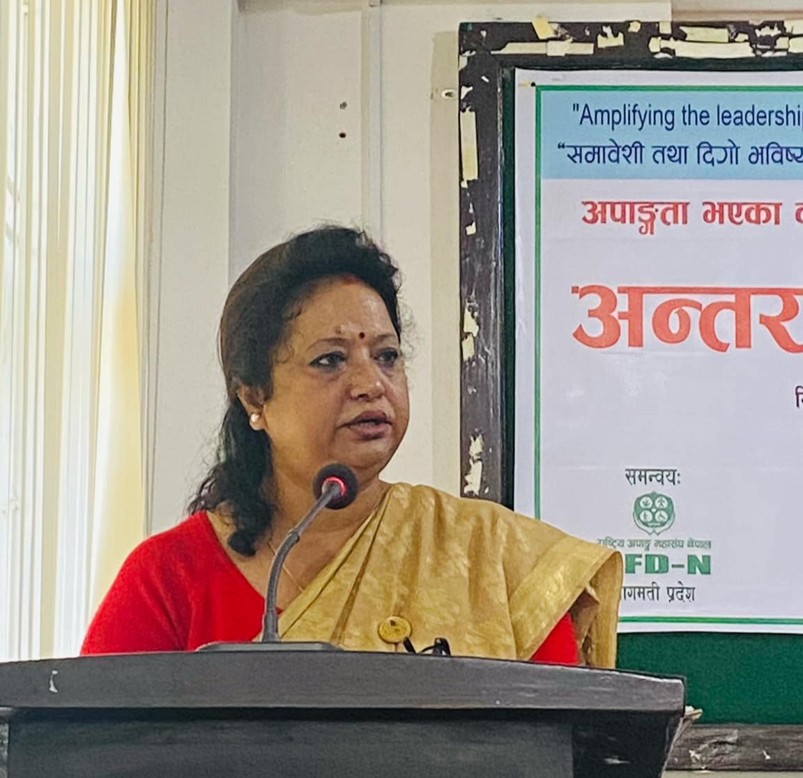 अपाङ्ग भएका ब्यक्तिलाई समानता दिन पहिला भवन अपाङ्ग मैत्री बनाउनु पर्ने बागमती प्रदेश सामाजिक बिकास मन्त्री हरिप्रभा खड्कीले उल्लेख गरेकी छन।