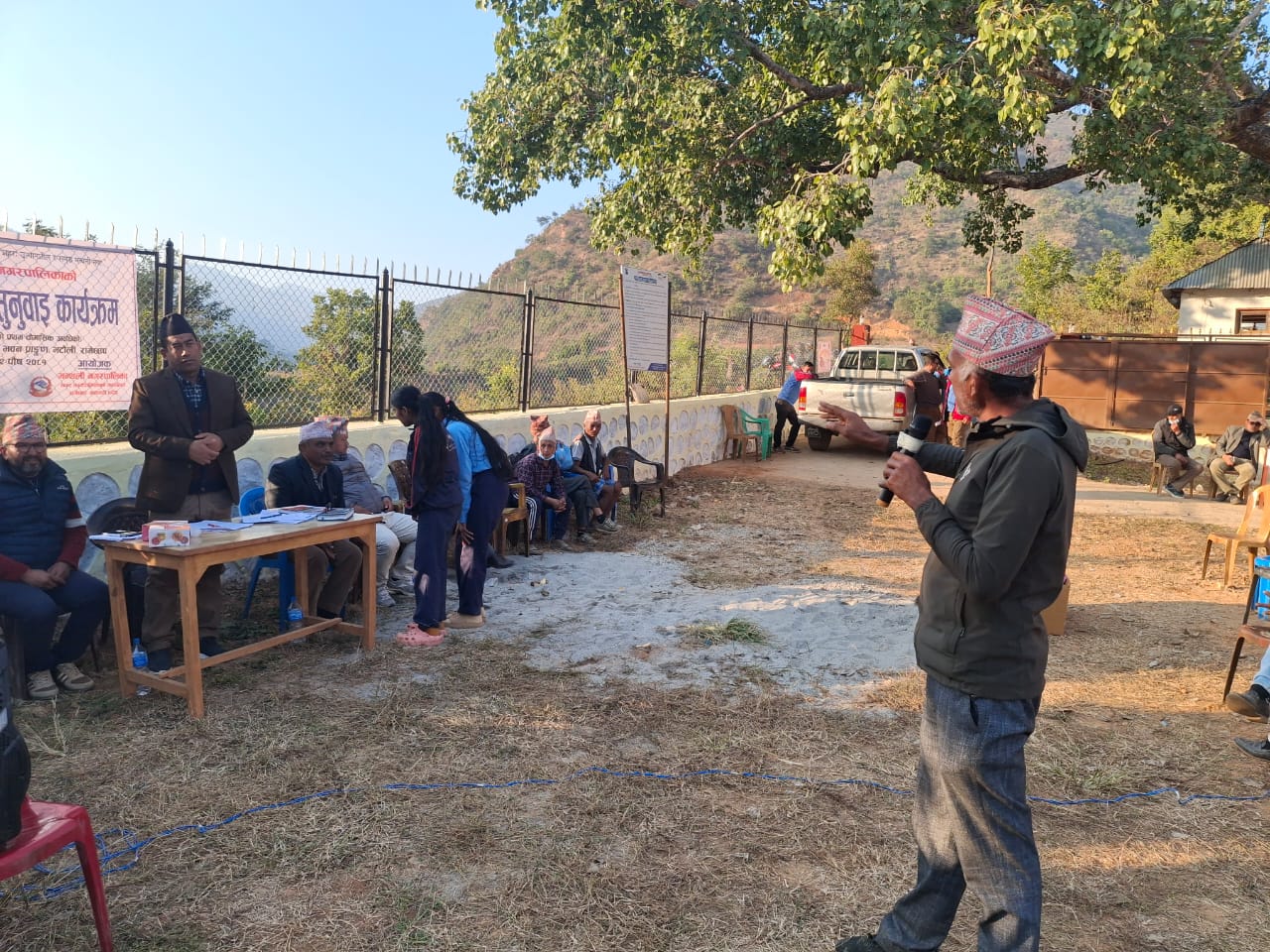 मन्थली नगरपालिकाले शुक्रबार भटौलीमा गरेको सार्वजनिक सुनुवाइ कार्यक्रममा सो कुराको जानकारी गराइएको हो। सार्वजनिक सुनुवाइमा नगरको काम प्रती असन्तुष्टि रहेकोे भन्दै श्री बहादुर माझिले नगर प्रमुखलाई प्रश्न गरे ; ६ महिना सम्म ६ प्रतिशात काम हुँदा अब ६ महिनामा कति काम हुन्छ मेयर साब? काम हुन असार मसान्तनै कुर्नुपर्ने हो?