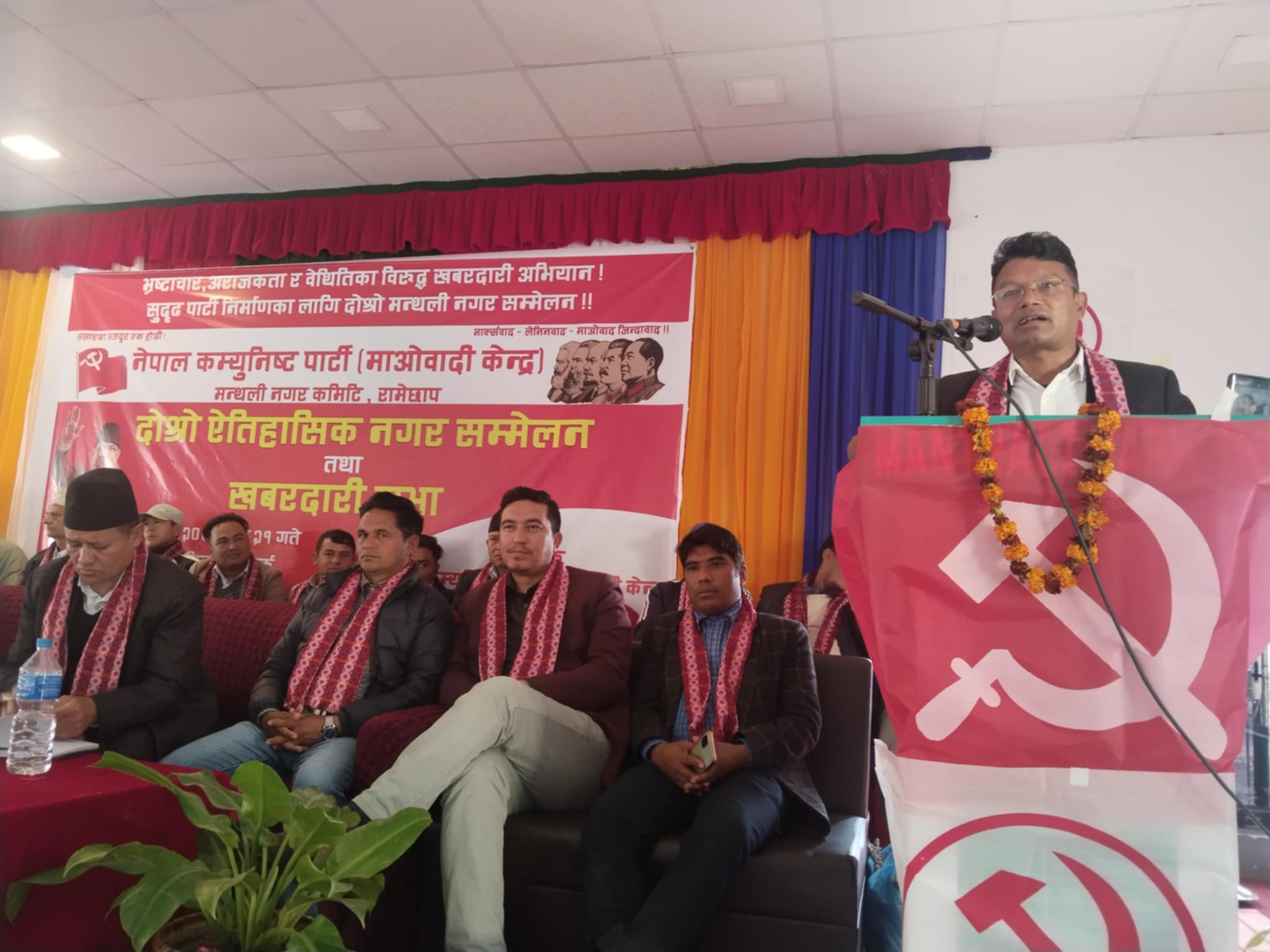 नेकपा माओवादी केन्द्र मन्थली नगर समितिका अध्यक्ष दिपक प्रसाईको अध्यक्षतामा भएको उक्त कार्यक्रममा संविधानसभा सदस्य तथा तामाङ मुक्ति मोर्चाका केन्द्रीय अध्यक्ष डिल्लीमान तामाङ र माओवादी केन्द्र रामेछाप जिल्ला समितिका सचिव प्रेम कार्की समेतले माओवादीले अघी सारेको नारा कार्यान्वयन गर्न बाँकी रहेकोले पनि माओवादीलाई एक पटक नेतृत्वमा पु¥याउनु पर्नेमा जोड दिएका थिए । अधिवेशनको बन्द सत्रले मन्थली नगर समितिमा नयाँ नेतृत्व चयन गर्नेछ । माओवादी केन्द्रले यसअघी गोकुलगंगा, खाँडादेवि, सुनापति र लिखु तामाकोशीमा अधिवेशन सम्पन्न गरीसकेको छ ।