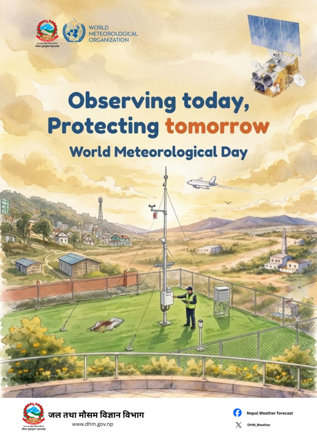 काठमाडौँ: ‘आजको अवलोकन, भोलिको सुरक्षा’ भन्ने नाराका साथ नेपालमा पनि बिबिध कार्यक्रम आयोजना गरी विश्व जल तथा मौसम दिवस मनाइँदै छ। सन् १९५० मा विश्व मौसम विज्ञान सङ्गठनको स्थापना भएको दिनको सम्झनामा सन् १९६१ देखि यो दिवस मनाउन थालिएको हो।